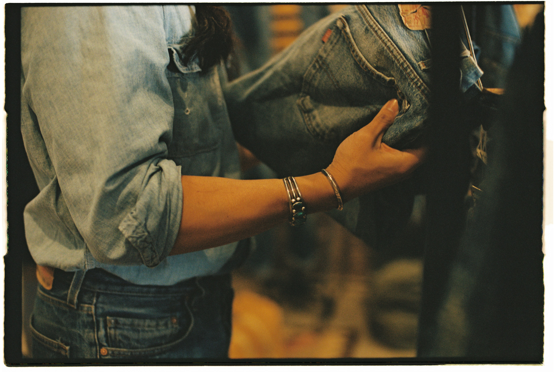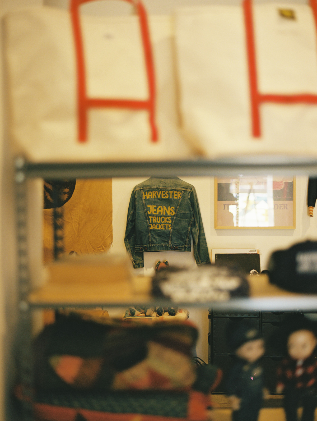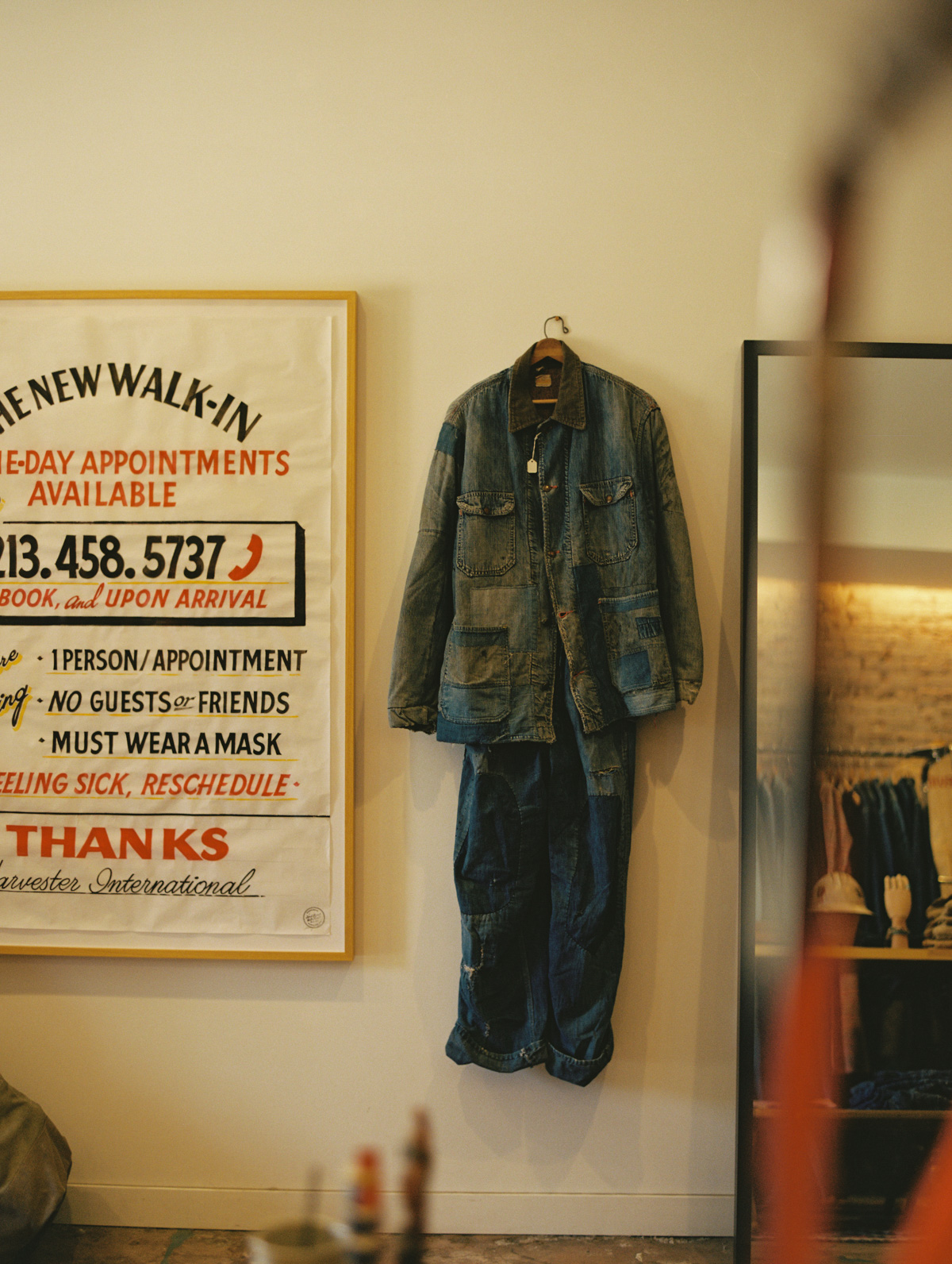 Today Brian’s knowledge of the vast landscape of vintage feels like second nature, and his fluency in the language of textiles is something to behold; the man could find a pair of 1950s Wrangler Blue Bells in a denim-filled room with his eyes closed. Most recently, he’s started his own line called Harvester, which creates original garments from reimagined vintage wares — either repurposing fabrics too worn for repair or stitching together different era-specific design details in a new way. Named for the former American pickup brand, the namesake doubles as a loose “reap what you sow” metaphor…the idea that vested time, conscious care, and practice will make way for their own version of abundance. As we’re readying to leave, Brian takes a seat next to a giant stack of denim awaiting repair. “You know,” he starts, “rare or not, a vintage garment is ultimately just something that’s been discarded.” A garment can only tell you so much about a moment in time, the original wearer, or what it has witnessed. And yet there’s a particular magic in holding something with the provenance of the past: it brings the black and white blurriness of history into sharp, three-dimensional focus. It helps make sense of the present by hitting us over the head with our shared humanity. We all yearn for lives that add up to something. And whether that’s reflected in a patchwork quilt of our distinct experiences or simply a name written in marker on a tattered clothing tag, they serve as reminders of the same sentiment: Hey, I was here. And for Brian, this is fuel for living.