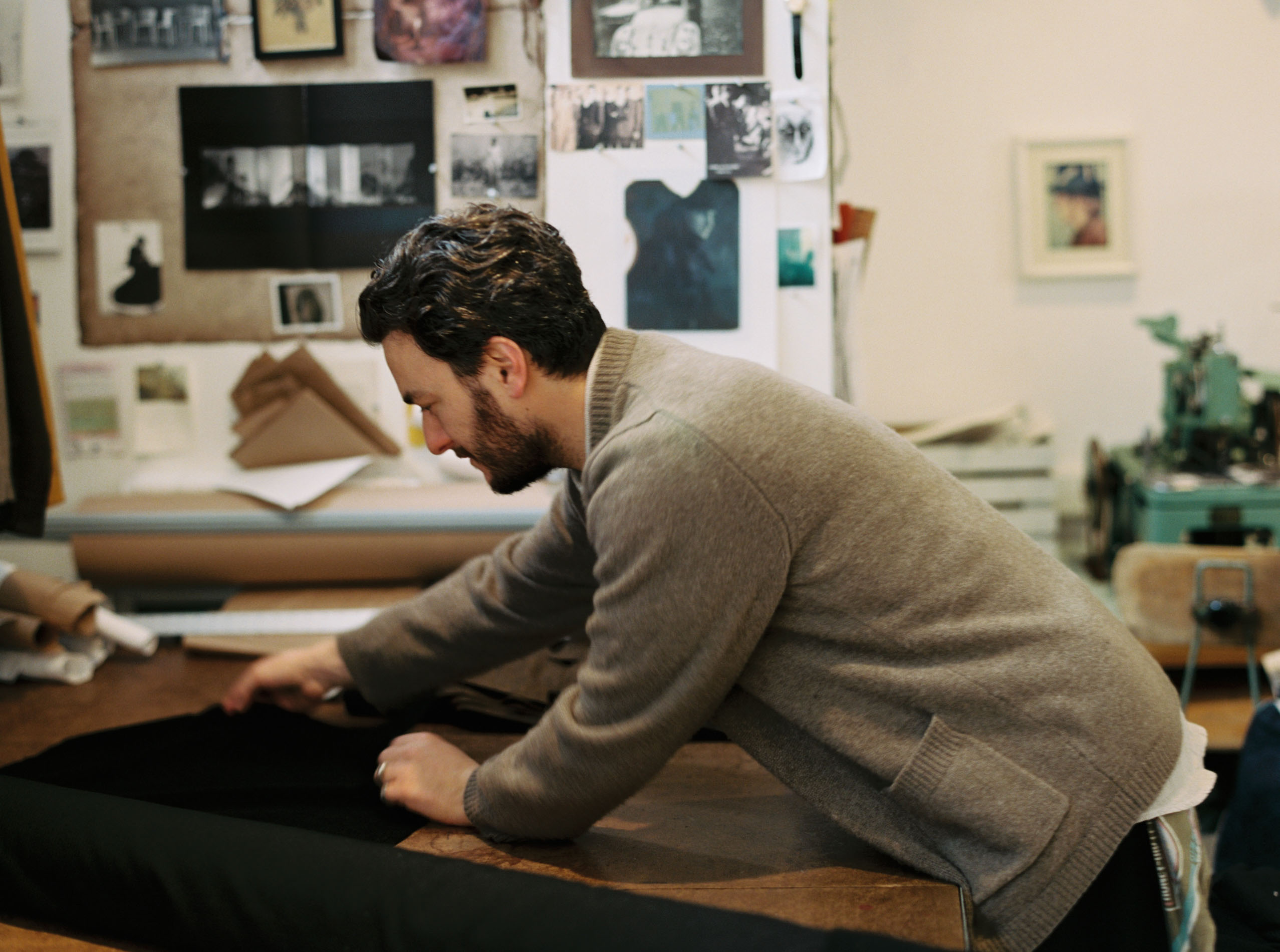 On a quintessential kind of San Francisco morning – cool, damp, a morning made for hitting ‘Snooze’ – Evan Kinori is curled up at the sewing machine of his Hayes Valley studio, his shoulders wrapped in a wool scarf. Classical guitar music twangs gently on the stereo.