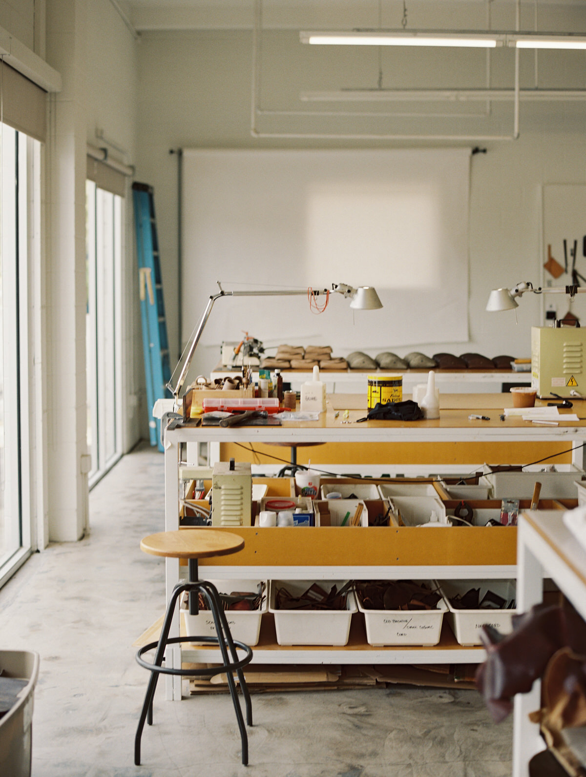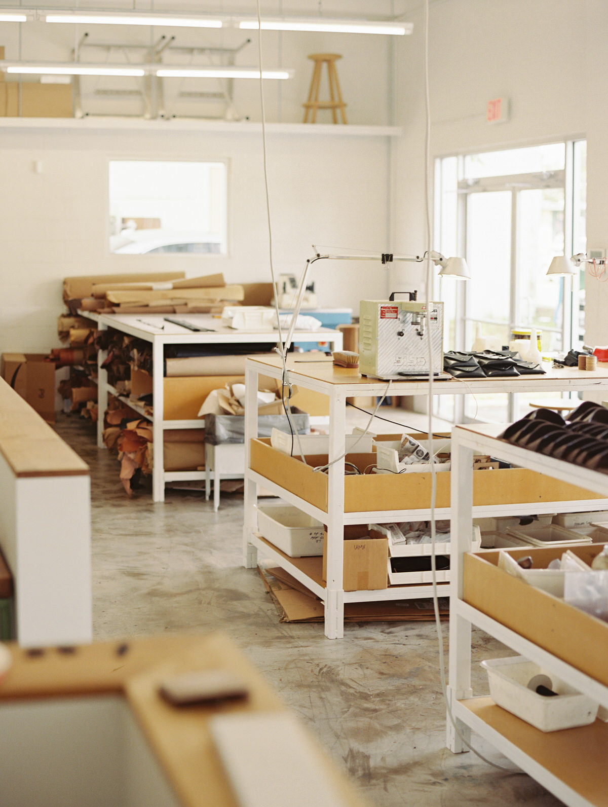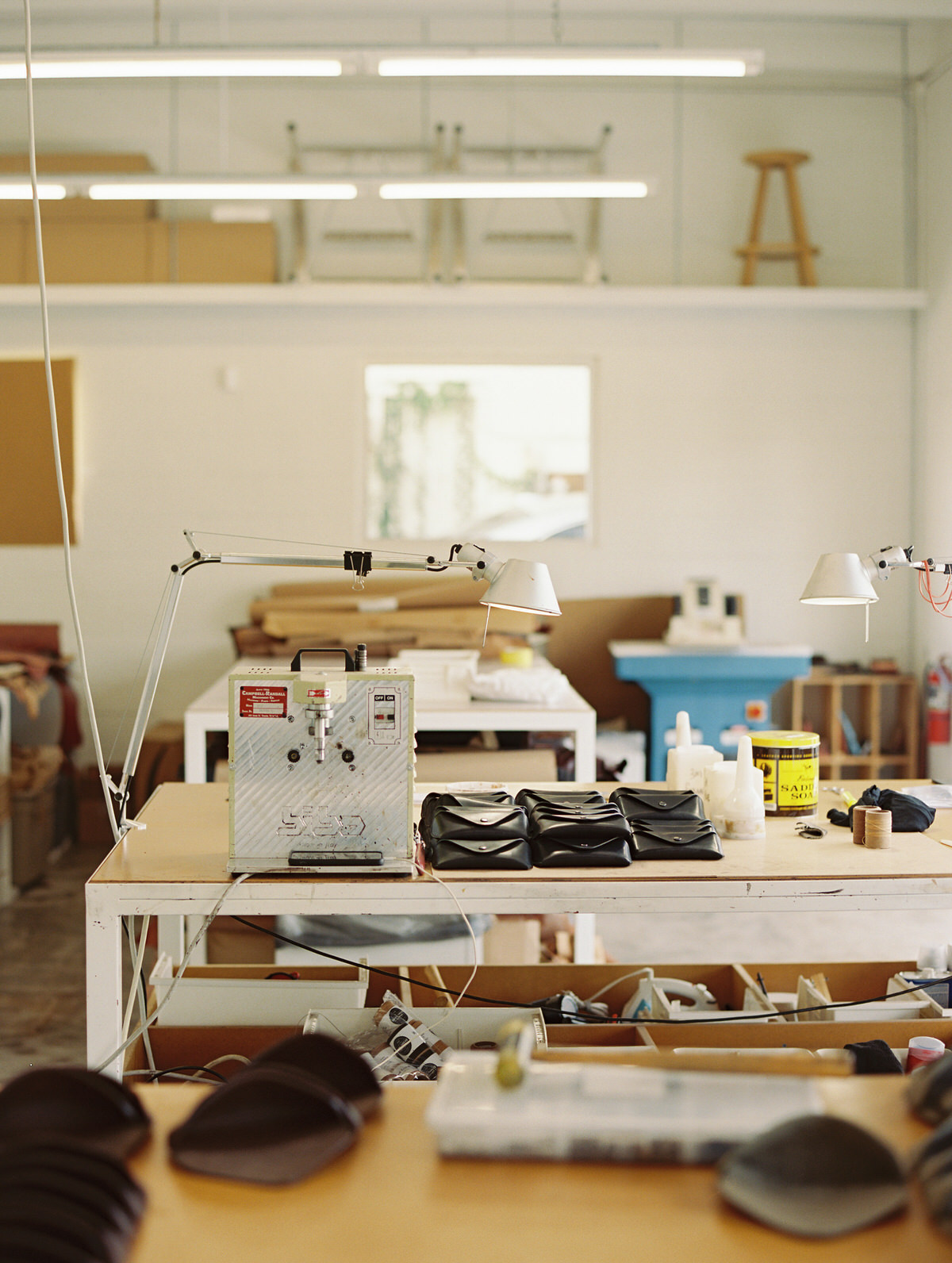 Our studio is a nondescript concrete block building on the edge of a neighborhood, no sign other than the address. It has tons of natural light, high ceilings and all of the tools needed to make things. I do many different parts of the business so each task has it’s ideal setting, whether that’s within the studio or at home. Light, quiet and tools are what’s needed for me.