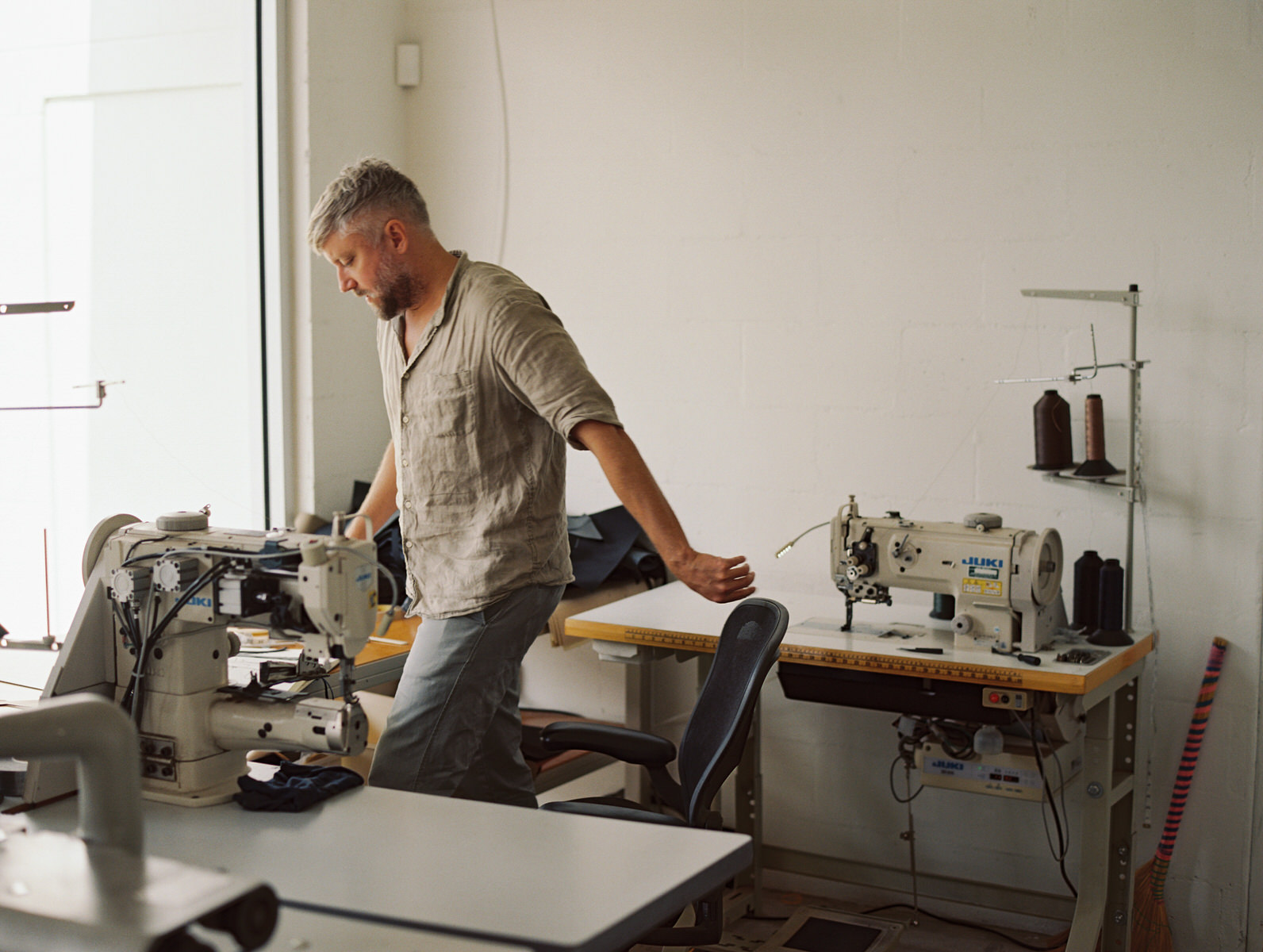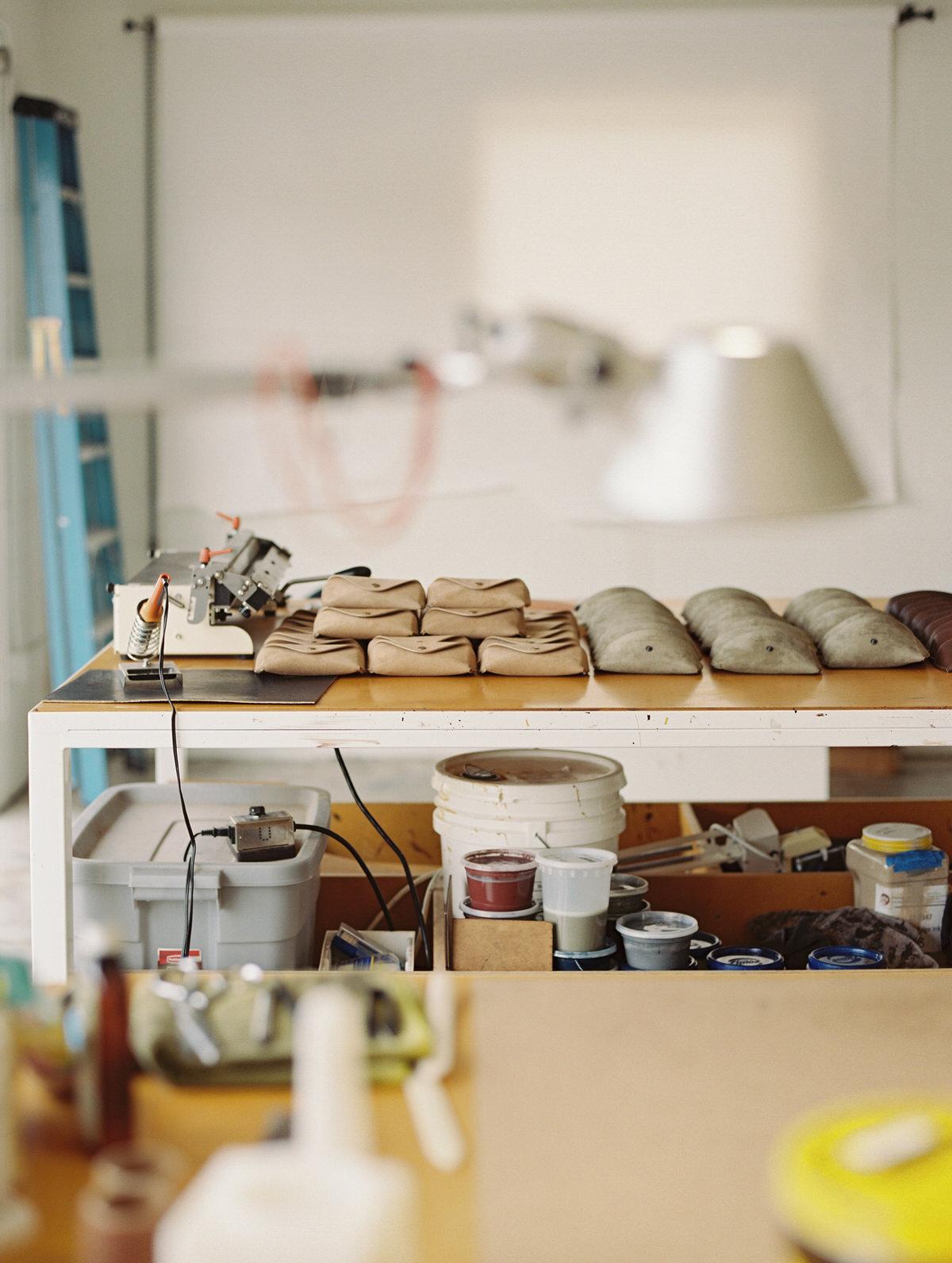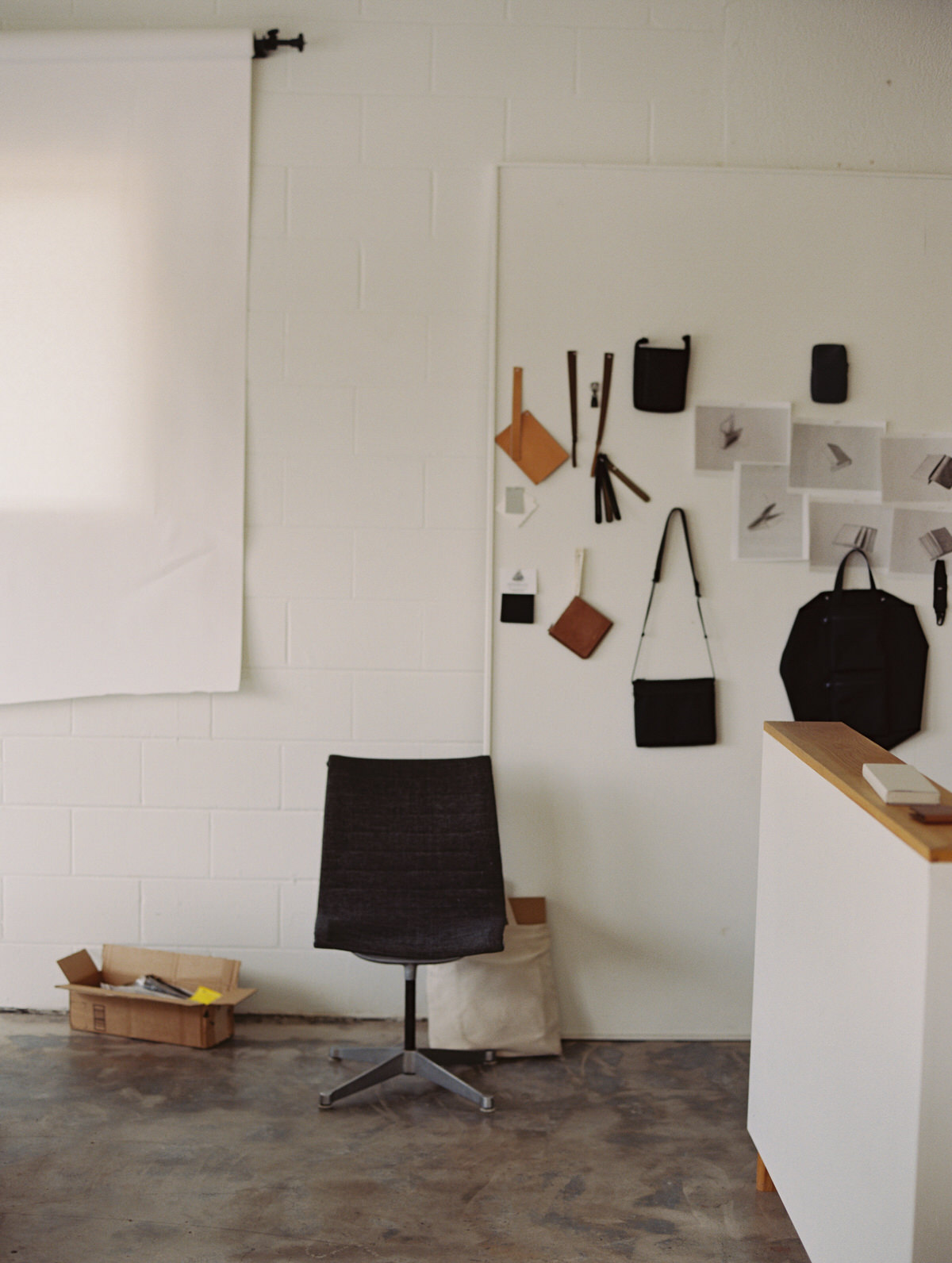 Our studio is a nondescript concrete block building on the edge of a neighborhood, no sign other than the address. It has tons of natural light, high ceilings and all of the tools needed to make things. I do many different parts of the business so each task has it’s ideal setting, whether that’s within the studio or at home. Light, quiet and tools are what’s needed for me.