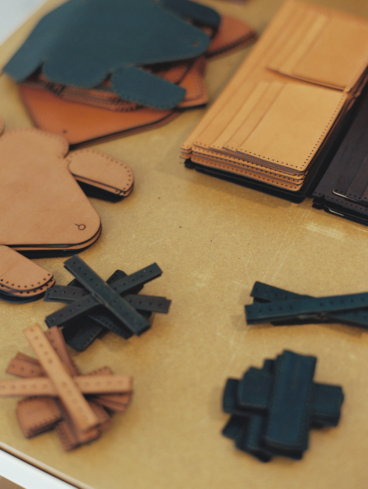 Leather eyewear cases in progress