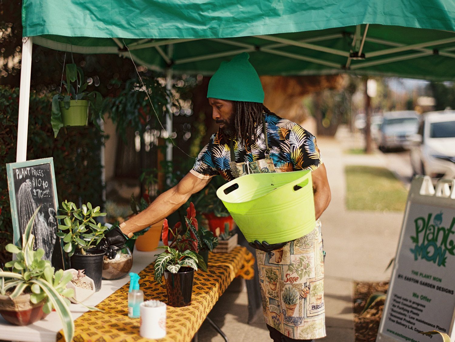 I’ve been working with nature since I was 9 years old, as my father, a horticulturist, would bring me along to nurseries and garden centers growing up. As I grew older, I pursued a passion for filmmaking, but I “always stayed close to the plants.” I had a 9-to-5 working in the water conservation industry. This led me to look into the farmers market and urban gardening industries, where The Plant Mon was eventually born. On weekends, with whatever free time available outside of the office job, I would setup at the South Central, Crenshaw and Atwater Village farmers markets to sell plants.
