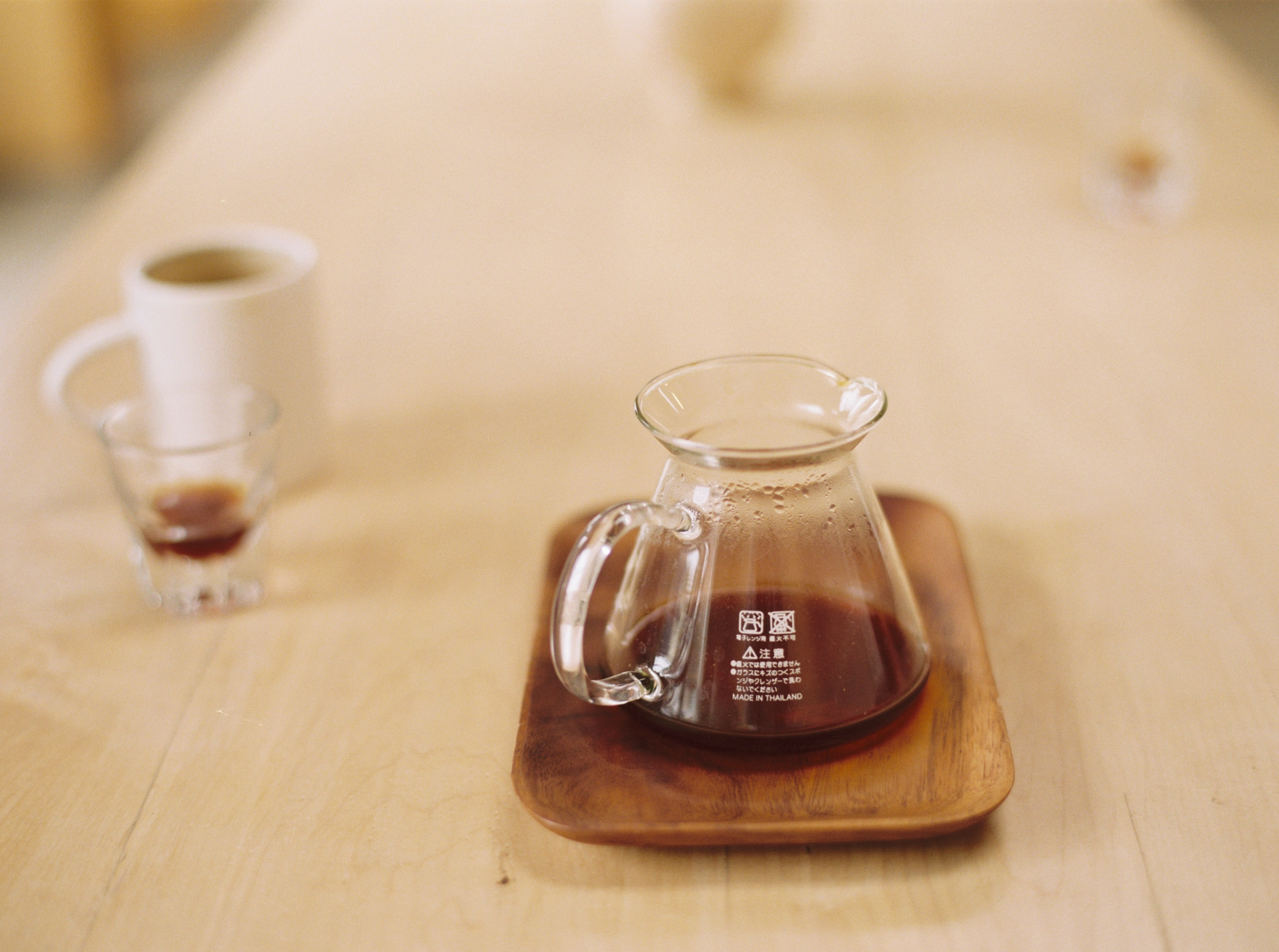 Both partners agree, their aesthetic comes from a gut-place, an unbroken line stemming from a rigorous dedication to doing a single thing, superbly well. Joonmo: “For us, our philosophy is not to create something new but to take something that exists and try to do it better, to refine it.” They model themselves after older, more traditional coffee/tea cultures, looking back to Italy, Japan, and Korea. “There is something you respect about that older culture. They’re proud of what they have and they’re trying to maintain and keep it. There’s a market for everybody. New stuff is cool but we love analog and we try to make it approachable.”