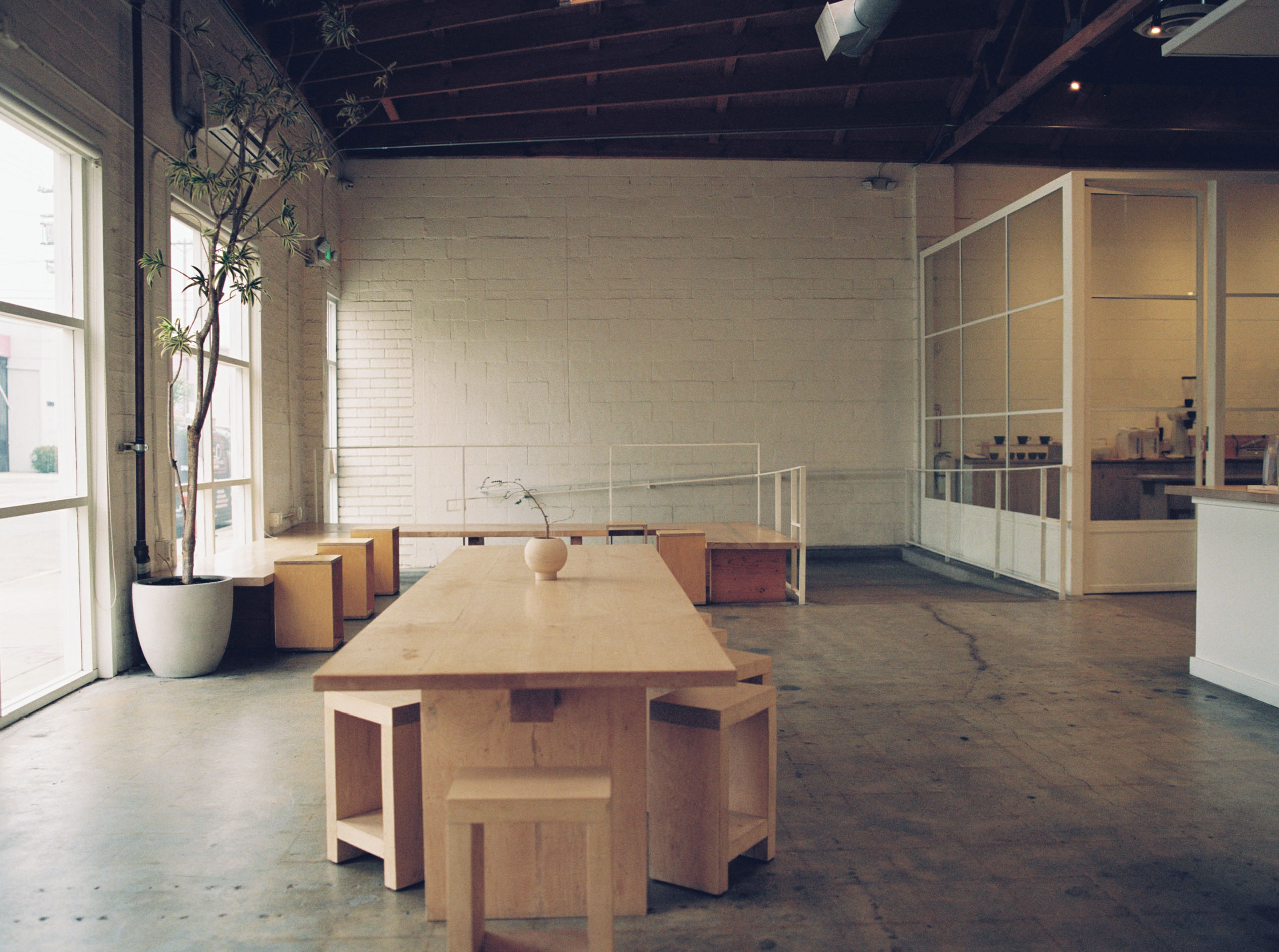 Maru, the L.A. based coffee company, was built by patience, happenstance, and a precise vision for well-made coffee in an open, beautiful space. The light is the first thing that strikes you at the Arts District branch, their second location in three years. The tall, white framed windows stream in natural light to highlight an homage to simplicity and thoughtful detail. In a landscape of branded coffee shops and hollow minimalism, Maru feels like a relief. There is no excess: one perfect communal table, a simple pastry case, and a well-curated menu of espresso and pour-over drinks.