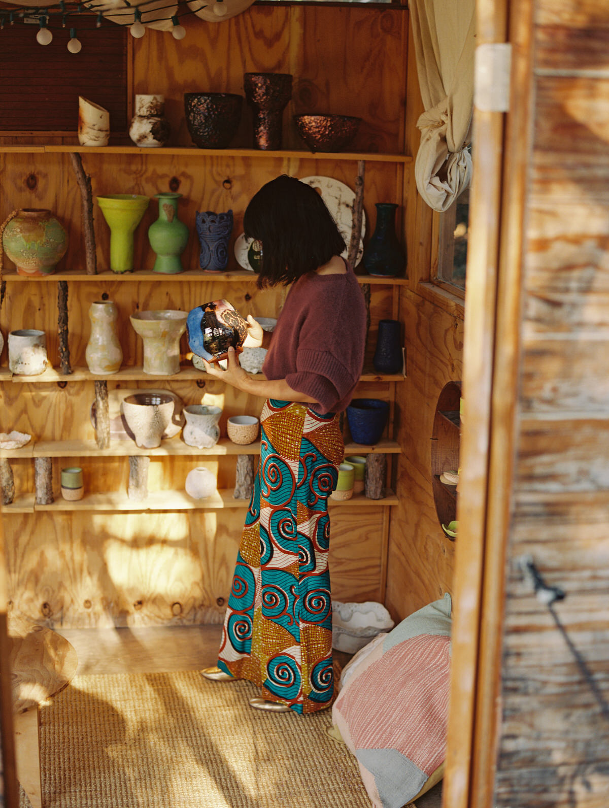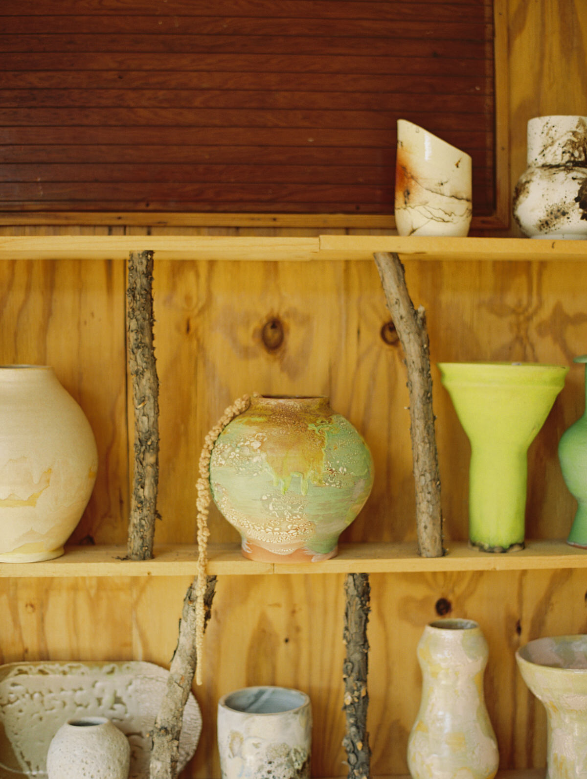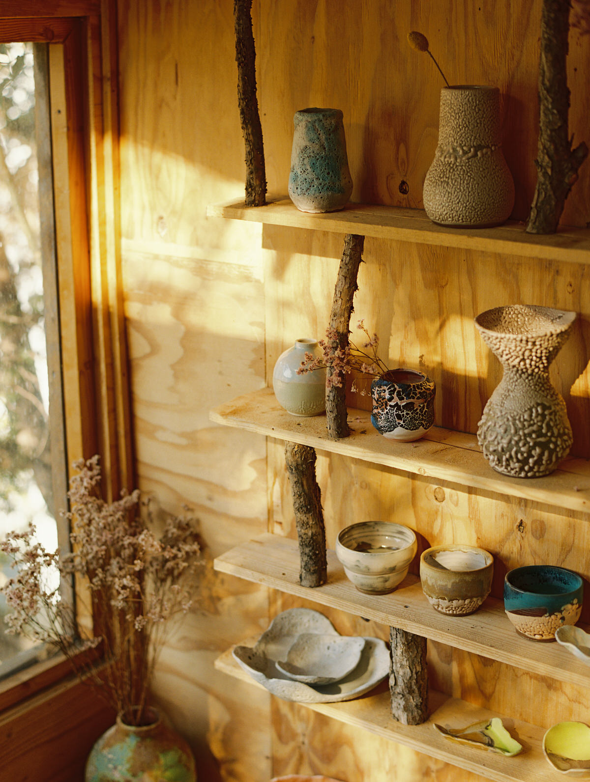 The ceramics treehouse happened by accident. I started doing ceramics some years ago and the works were in boxes all over the house. When friends wanted to buy pieces I had to get the boxes, unwrap them and wrap them up again. So instead of the constant unwrapping and wrapping, Mark, my partner suggested I display them in the cabin on our hillside. It wasn’t getting used that much, even though it was the selling point of the house! I’m glad it’s finally found it’s true purpose. It’s dreamy place to host studio visits and backyard events. It’s a gallery, store, and place to get inspired.