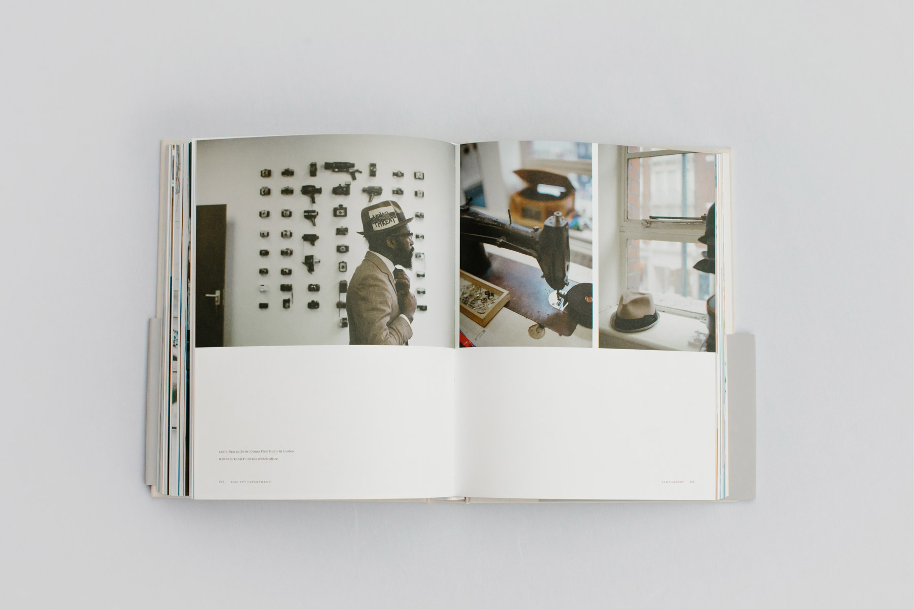 “I’m always going to work with my hands, always be hands on,” says Sam Lambert, holding out his left palm to reveal an intricate tattoo of a pair of scissors. “It’s a reminder that our hands are the most important tools we have,” he says of the ink. “I come from a background where everything is made by hand, and everything that your hands create contains a little of the spirit of the person who made it."