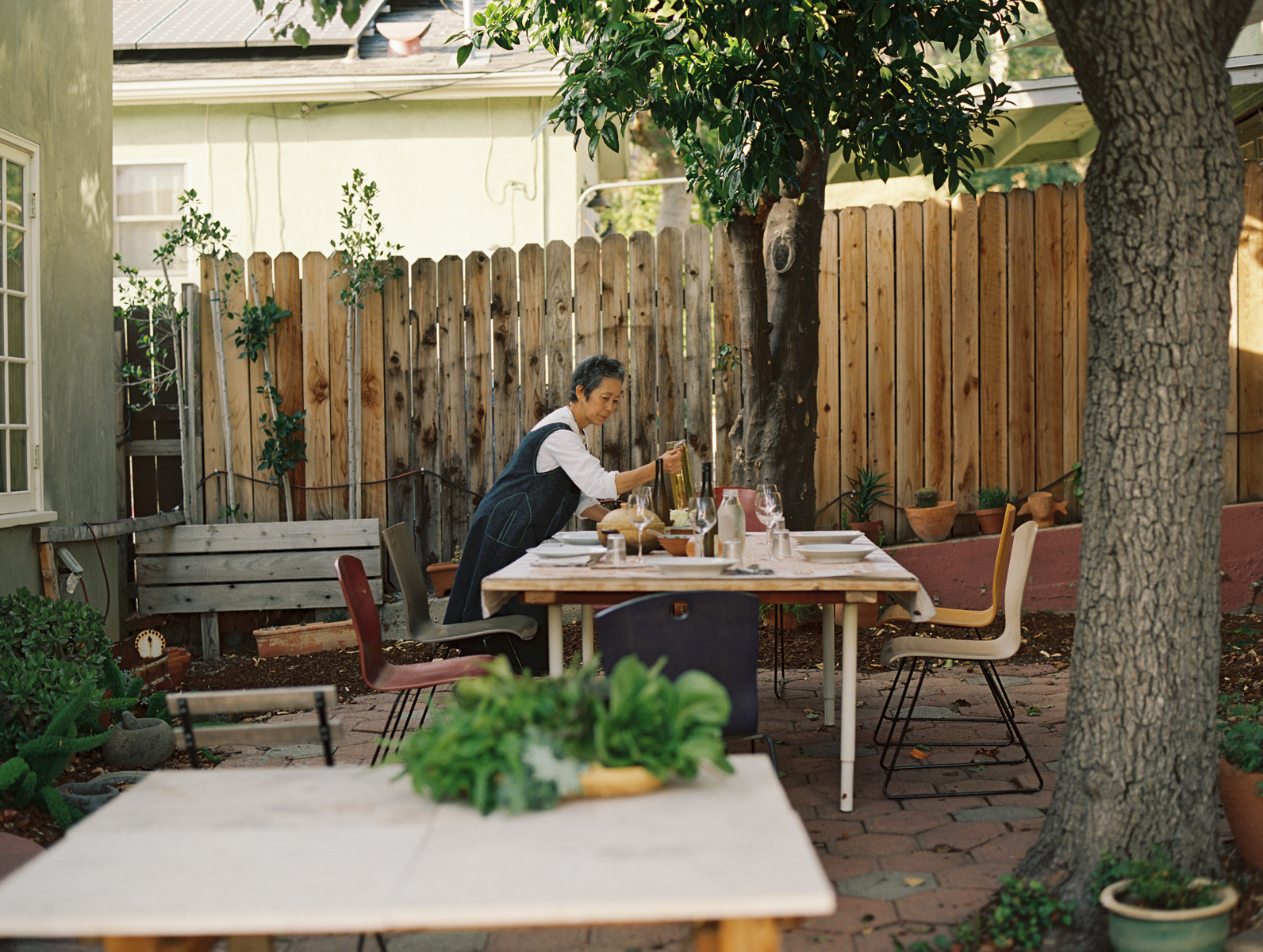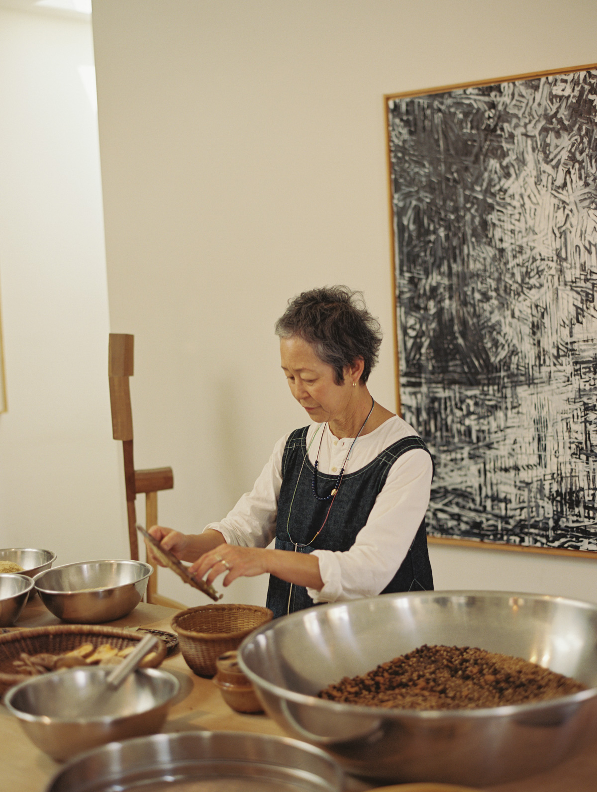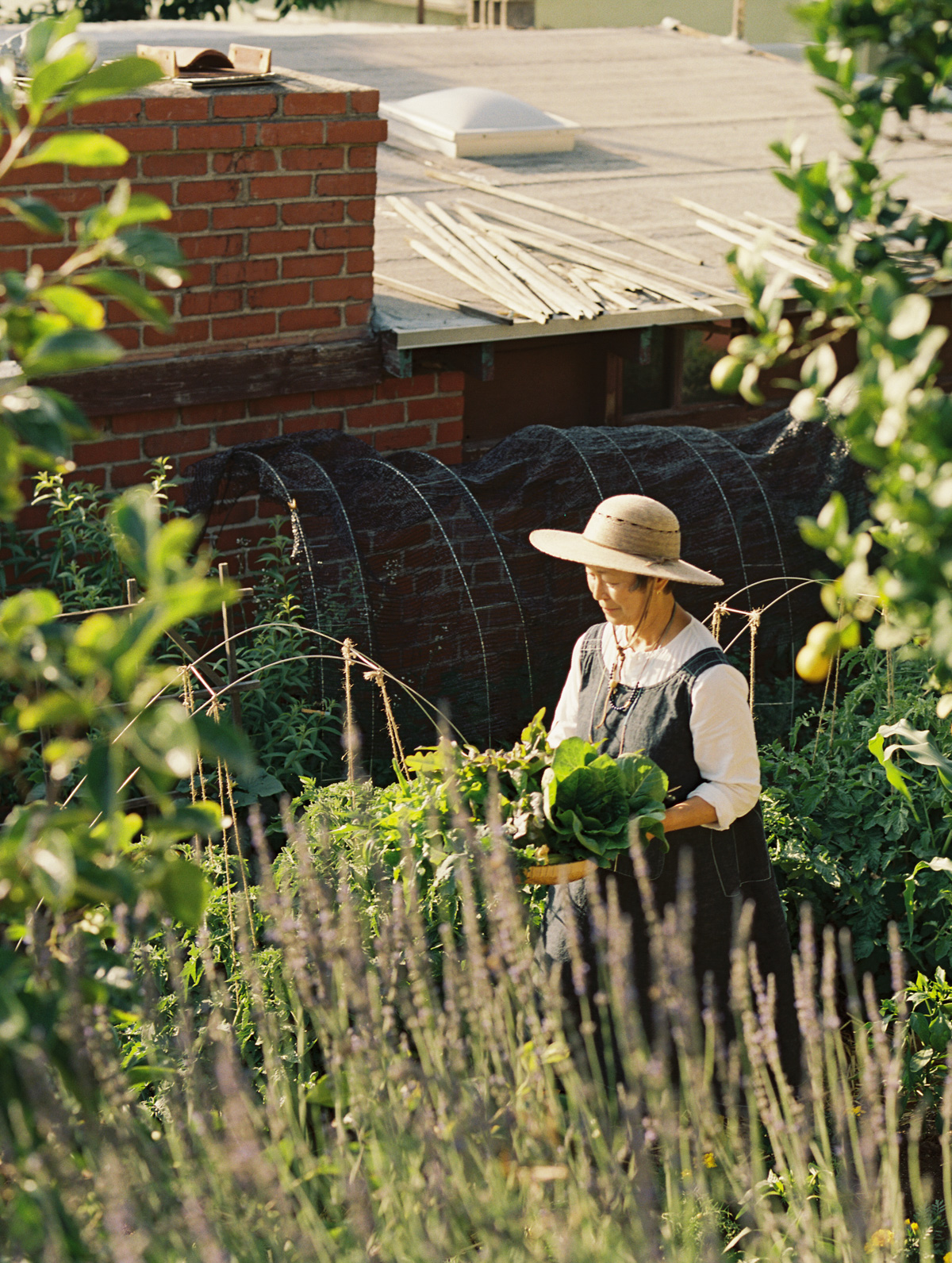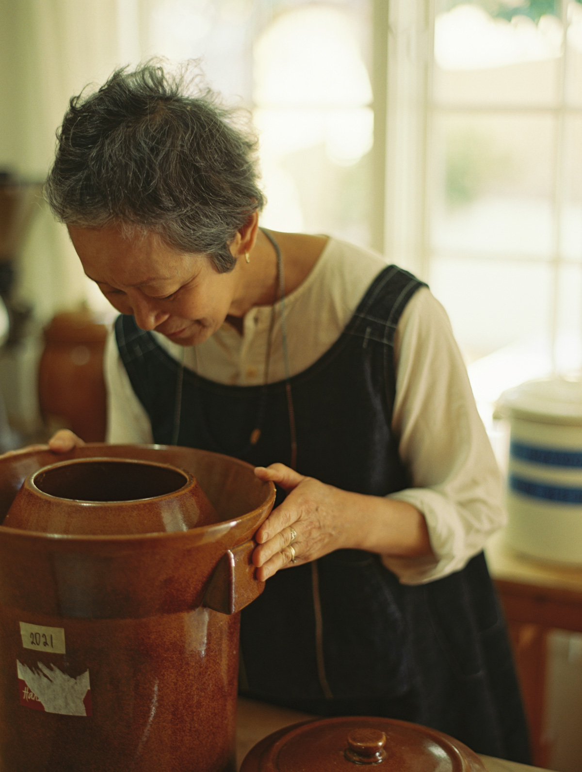 From the moment we step into Sonoko Sakai’s Los Angeles home, the energy is buzzing. She greets us and then promptly oscillates through the house. At every turn, an ongoing culinary project is in progress, and she toggles without pause between stirring a pot on the stove, telling stories, showing us a favorite illustration in a book, running to the garden to snap a few green beans off the vine, brewing a pot of herbal tea, testing a batch of miso with a tiny metal spoon like a sample of gelato.