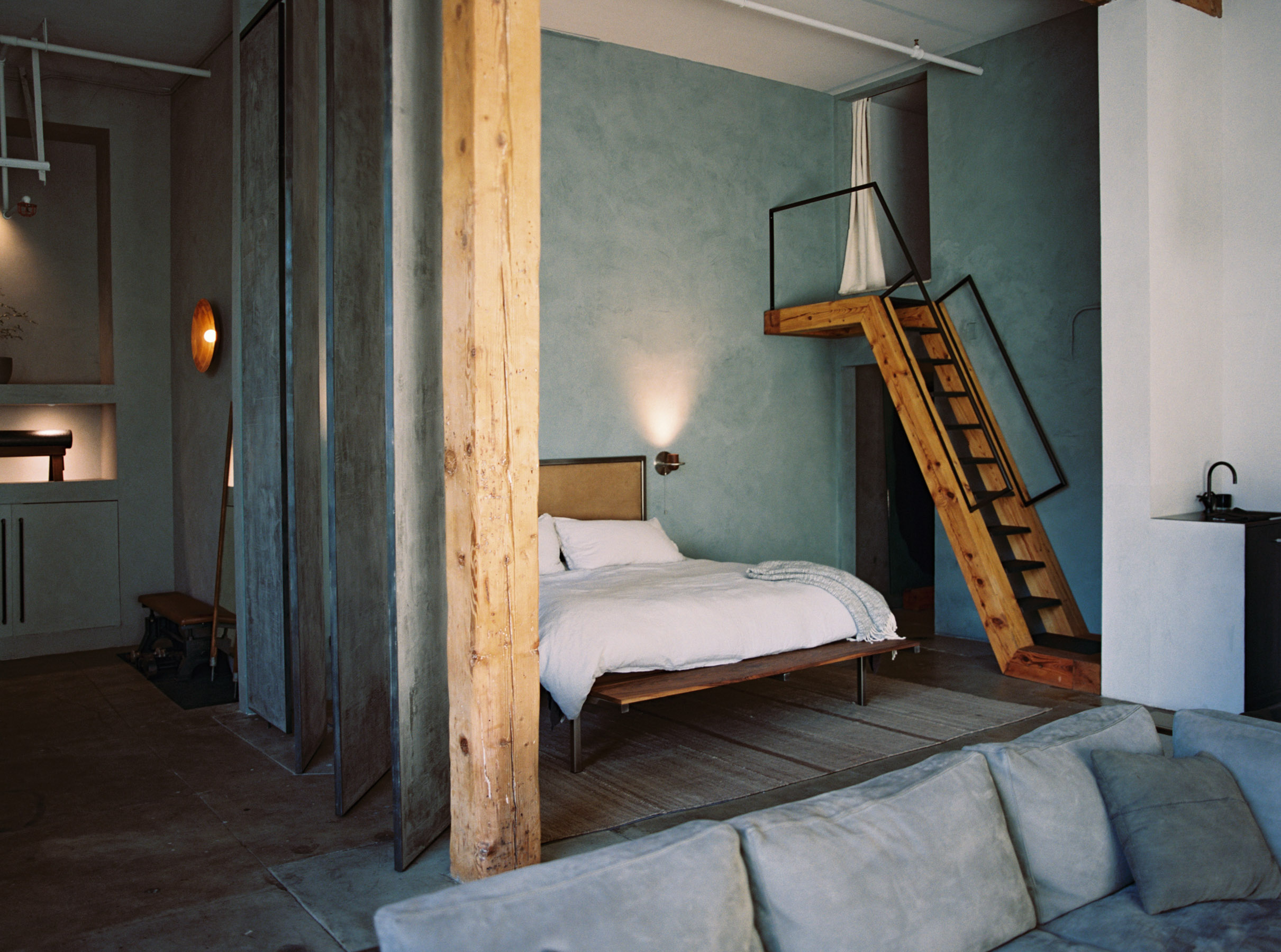 Then there’s The Loft (capital), the grandly ambitious showroom Stephen opened last year next door to the loft (lower case) where he lives with his wife Beks and their moppy Sheepadoodle Obi. It was a massive undertaking that expanded his limits as a designer. The result is arrestingly beautiful with striking fixtures – like the heavy iron and wood staircase leading to a meditation room and the rotating, slab concrete room-dividers – which share the same balanced contradictions of Stephen’s best furniture designs: minimalist aesthetics projected to maximalist dimensions, industrial textures hammered into refined shapes, old made new. It is also, importantly, a livable, functional home intended to host overnight stays, experiential events, and dinner parties. Stephen and Beks envisioned it as a bold progression of the regular morning coffee and evening cocktail parties they’ve hosted out of the rear landing of their home for years – a space to meet, be met, and create. In short, a tidy summation of his creative ethos. “To me, making stuff and being able to connect with people, that’s kind of it.”