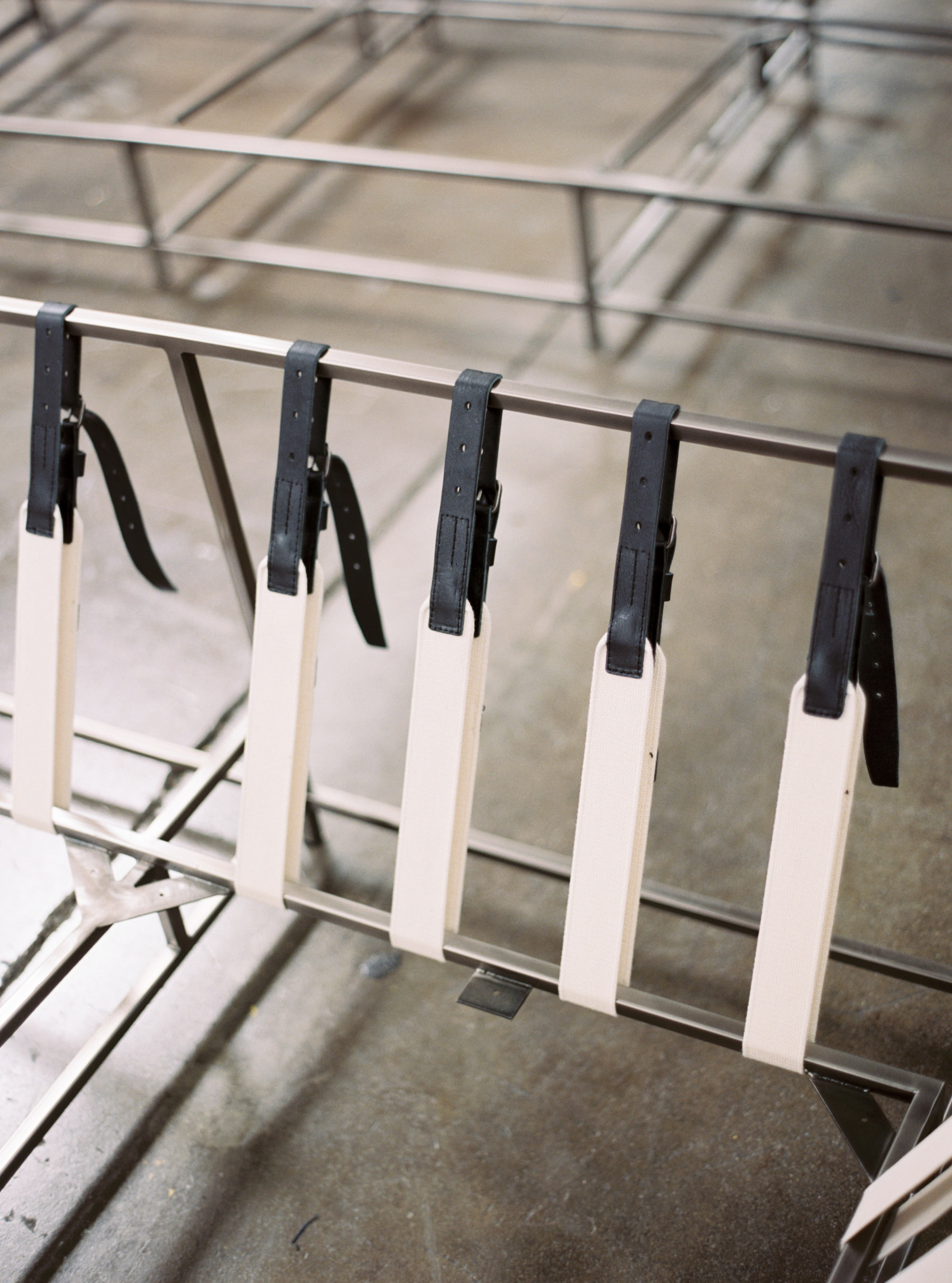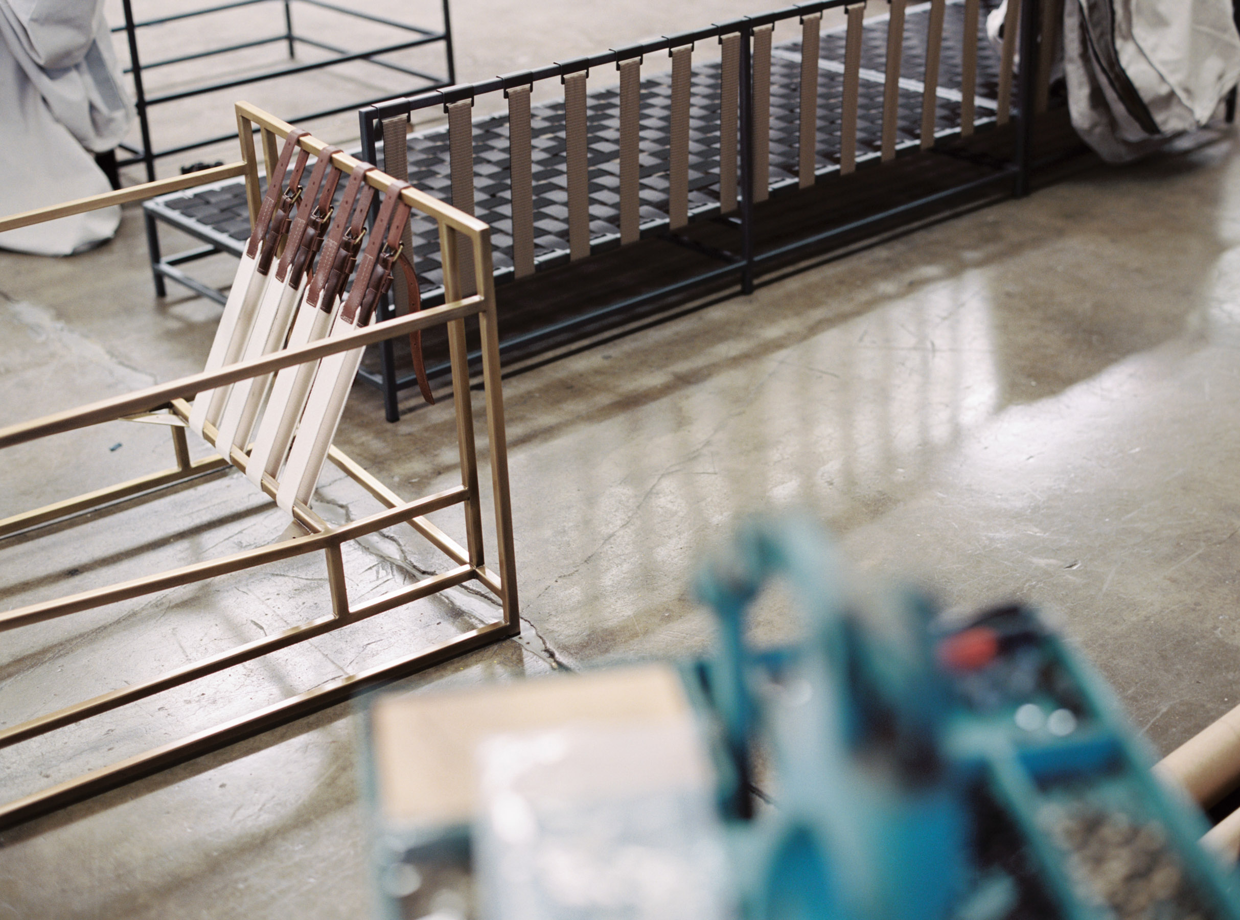 Stephen let his creative instincts guide him. He fixated on furniture – “Furniture is a category where the ceiling is really, really high,” he says – tearing vintage pieces apart to understand their anatomy and how to build them anew. He also decided this time, if he named the brand after himself, he wouldn’t ever have anyone to answer to but himself. The pressure was novel and real – at his first trade show, the nerves made him physically ill. “That was a kind of one defining moment: Nobody is behind you. If you fail, this is on you, buddy,” he recalls. But he succeeded, his work almost instantly attracting orders from the celebrity menswear set, with names like Tommy Hilfiger, Nick Wooster, and Frank Muytjens among his early clients. From the start, Stephen’s most lusted-after pieces have always been his formidable sofas and chairs - hefty down cushions wrapped in well-worn fabrics (an army tent, or an indigo boro blanket, or a Persian rug) resting on canvas-belted steel frames. Their sharp, unadorned lines and rough textures have an industrial masculinity while also suggesting the quiet drama of an art installation, like monochromatic Mondrians extruded into homeware. They are couches aspiring for more.  Success in a category as involved as furniture also brought an ever-expanding network of local creatives and blue-collar artisans - welders, upholsterers, glassblowers, seamstresses, woodworkers, fabric suppliers – into his orbit. LA is a city that the intrepid can make their own, and Stephen has carved his own path through its Eastern and Southern corridors. “I feel like part of my job as a designer is just to stoke the fire in all these different artisans,” he says, adding, “I feel like those are the dudes who are the gatekeepers of creativity in my mind.”