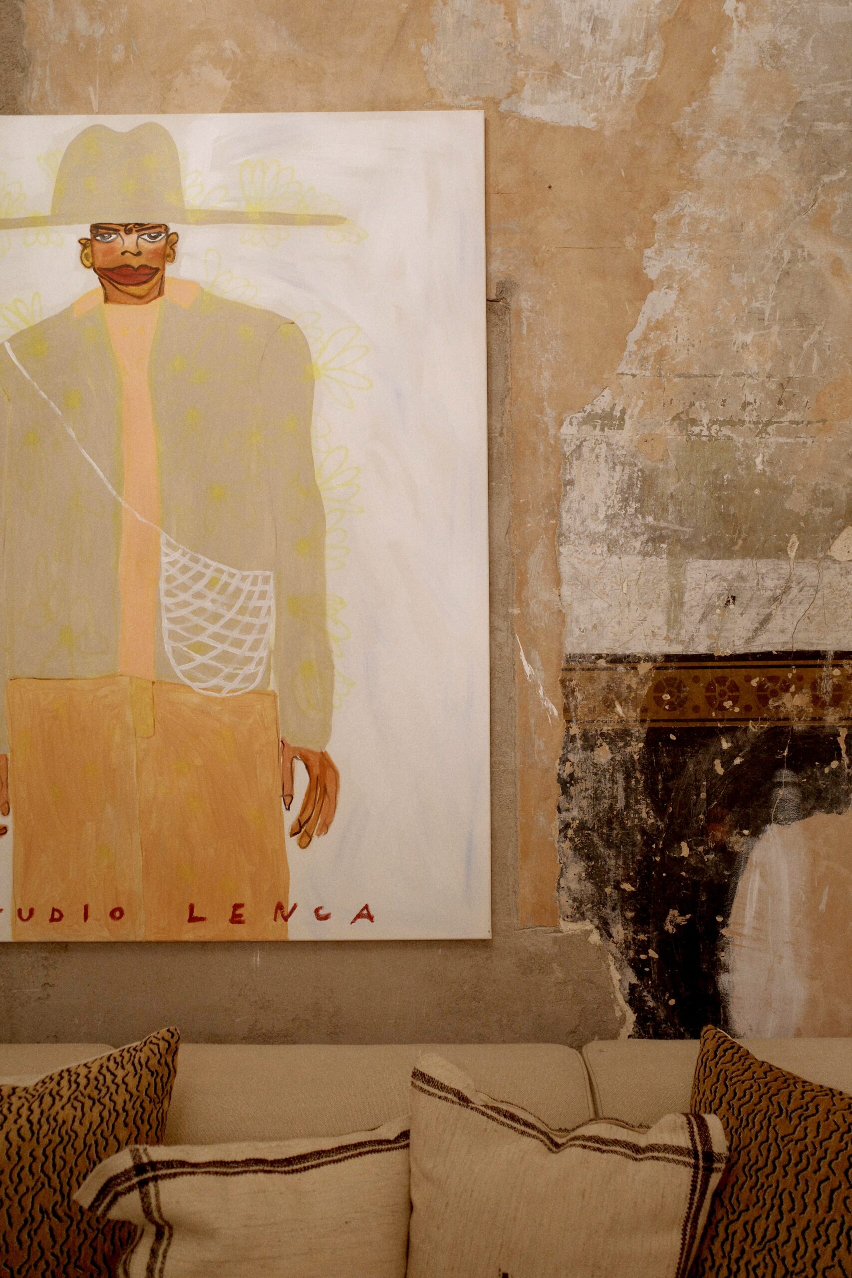 The twin figures that populate Jose's canvases are traditional dancers from El Salvador, repeated and refracted through bold fields of color. They function as anchors—visual touchstones that create structure in a practice built from fragments. For someone whose beginning was marked by displacement and invisibility, these figures offer something essential: a sense of belonging, a way to keep tempo. They're both deeply personal and profoundly political, rooted in a place Jose carries within him even as his work travels far beyond it.