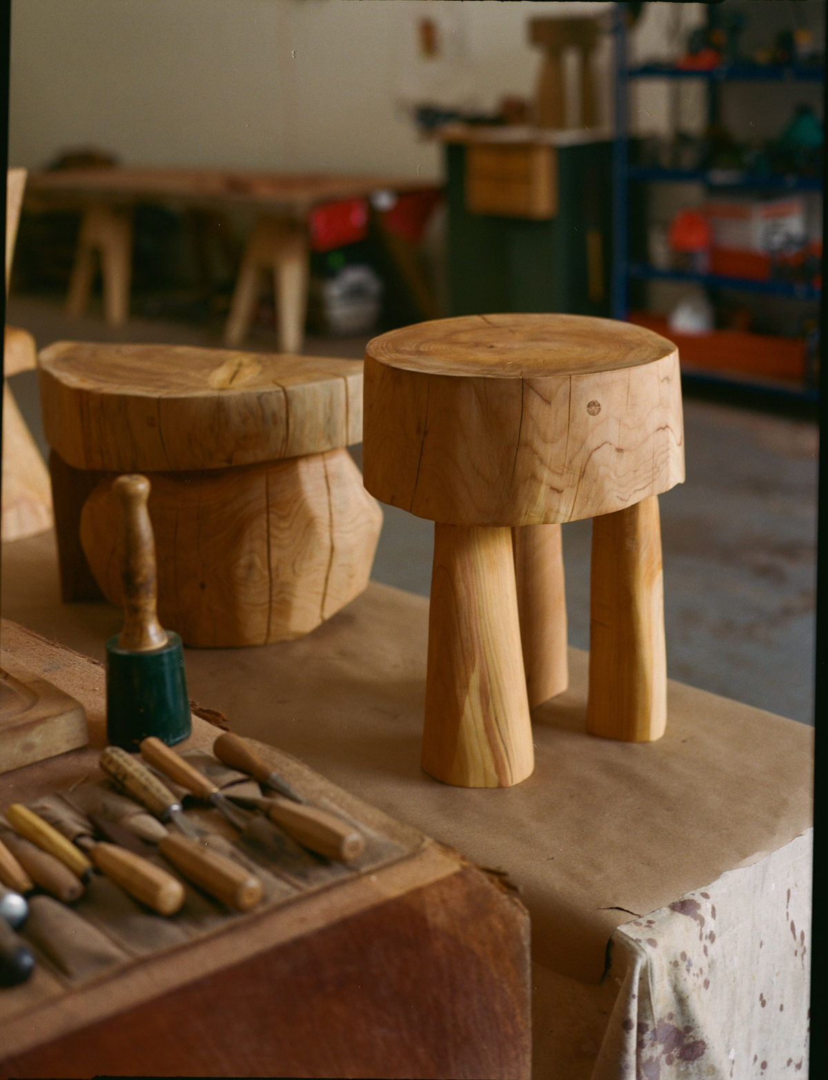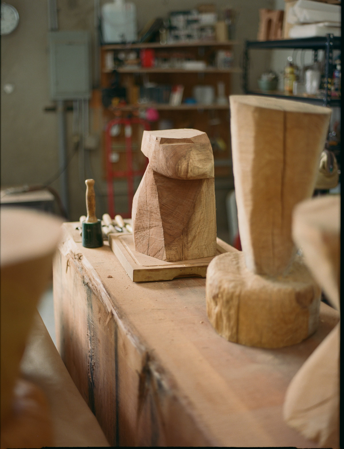 "I don't really consider myself a woodworker, more of a sculptor mostly because I'm carving these forms in a reductive process and traditionally, woodworking is more of an additive process that requires lots of tools and precision. But what I'm doing is kind of the opposite of that.